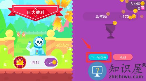 3、恭喜你获得了巨大的胜利,点击下一场战斗继续玩。