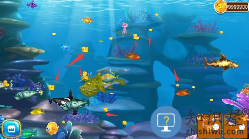 2、让你的体积增长一点之后,你可以试着吞下大鱼,让你的体型变得更大。