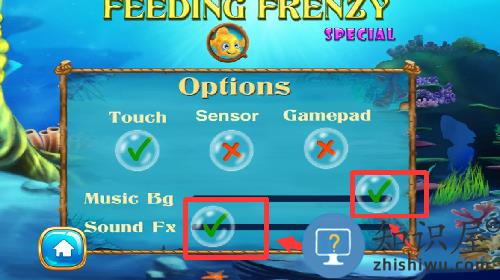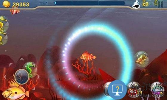 3.四种不同控制鱼游动方式:方向滚轮(左下,右下),滑动,重力感应!(在游戏Setting里可以设定)