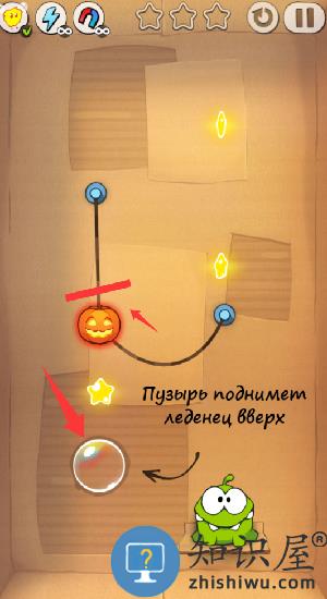 1、这个多了一个泡泡,先切了第一条线,然后泡泡贵升起南瓜。
