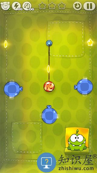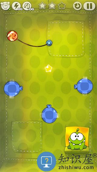 1、割绳子布盒1关主要借助气球的吹力,让糖果能够接到星星。