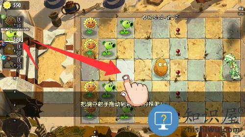 1、向下拉动弹弓上的植物,然后松开手指,会发射植物。