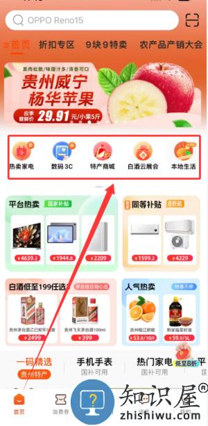 3、首页提供热销家电、数码电子、地方特产、白酒会展及本地生活服务。