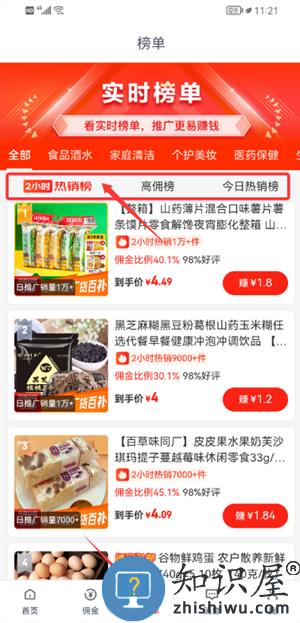 2、切换至榜单页面中,选择2小时热销榜、高佣榜等浏览热门推广商品。