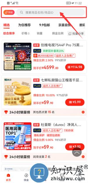 3、通过顶部搜索栏输入商品名称或ID,可精准查找目标推广商品。