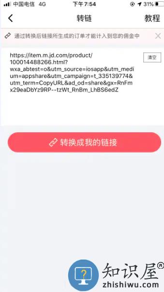·把刚在JD.COM复制的链接内容粘贴上去,点击【转换成我的链接】;
