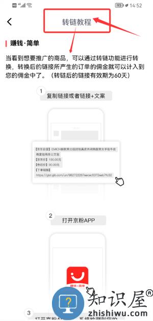 1、进入“转链教程”页面,学习如何复制商品链接及生成推广转链。