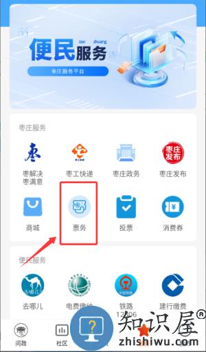 2、选择票务功能入口,进入购票界面。