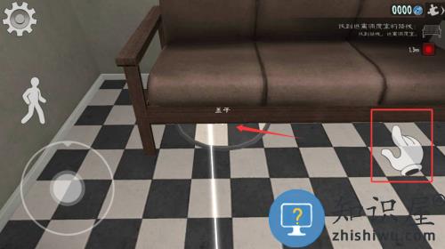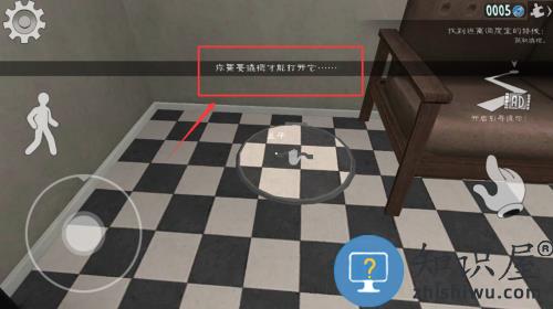 2、根据红框提示点击地面上的盖子,调查沙发旁的物品。
