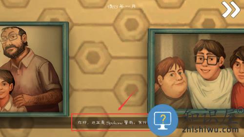 2、阅读1983年警局对话,点击红框箭头继续剧情。