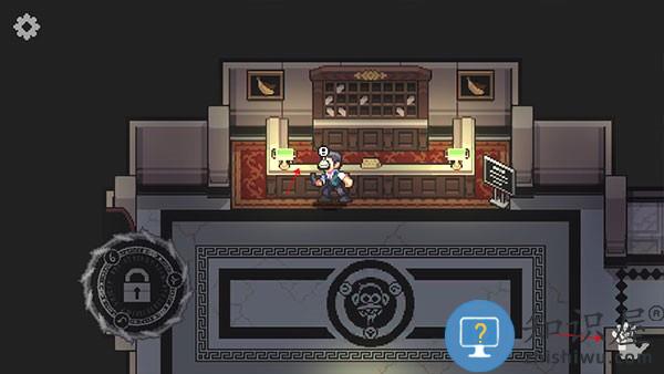 3、首先我们来到酒店前台,感叹号处可以获取信息,靠近物品后点击右下角的手印,可以完成查看和拾取等操作。