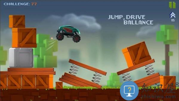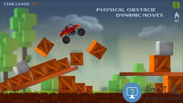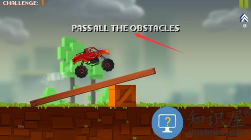 3、驾驶卡车飞越障碍,完成红框挑战即可通关。