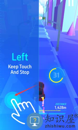 3、点击左侧蓝区停车键,右侧红区控制赛车。