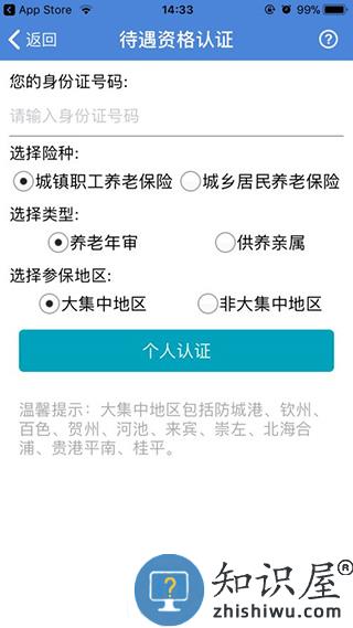 点击【待遇资格认证】按钮,如图所示。可以认证的人群有养老人员和供养亲属。