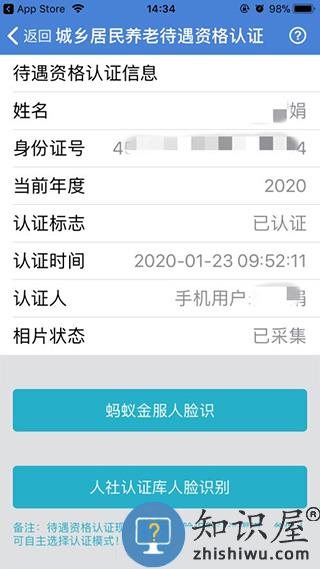 点击后,会显示老人的个人信息。小编1月份帮妈妈认证了,所以显示是【已认证】。如果是还没有认证的,显示的是【待认证】。点击【人社认证库人脸识别】。