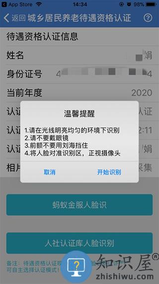 系统提醒:在光线明亮处进行认证、不戴眼镜、刘海不遮挡、正对摄像头。点【开始识别】。