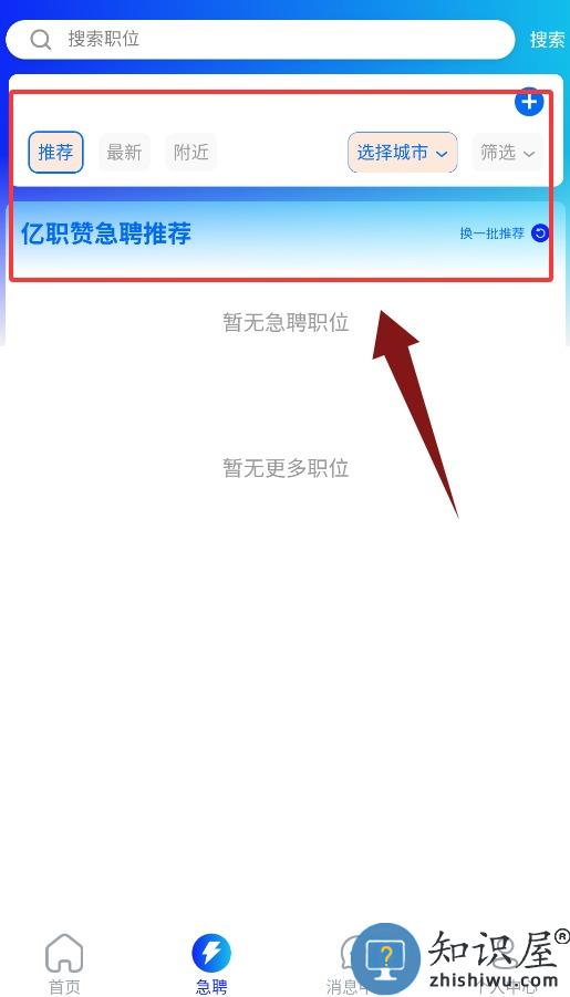 2、首页支持按推荐、最新及城市维度筛选,并可选择从事行业方向。