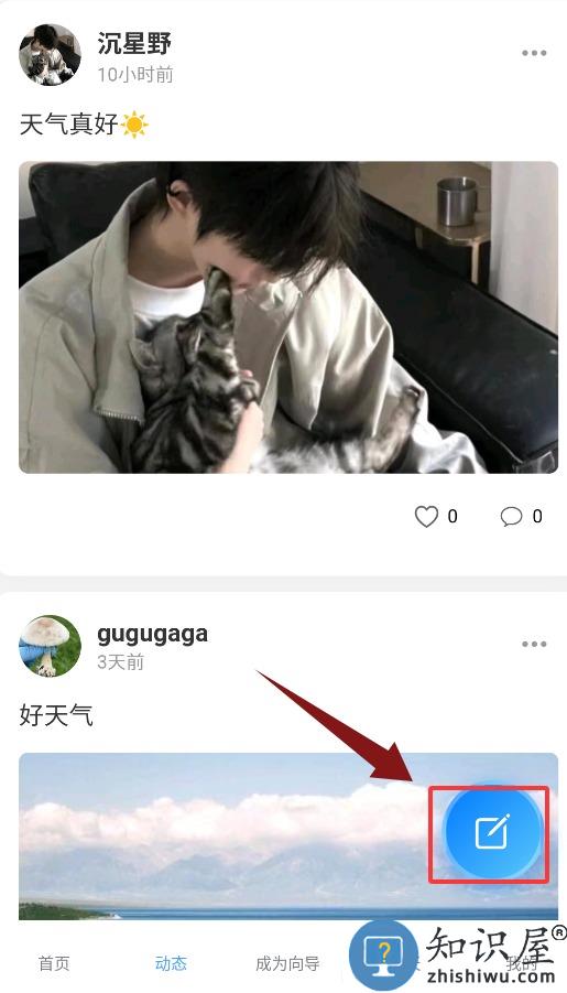 3、动态页支持浏览他人分享,亦可点击右下角按钮发布个人内容。