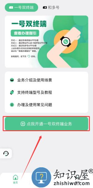 3、首页提供了便捷的一号双终端业务办理入口,用户可在此为智能手表等设备开通独立的通信附属号码服务。