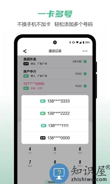 已有多个移动号码,无需携带2265多部手机或双卡双待机,可在和多号软件中将其中一个号码设置为主号,其它号码设置为副号,最多一卡四待。