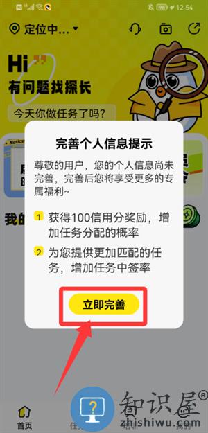2、在信息提示中,点击立即完善进入补充资料页面。