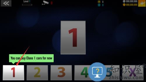 1、在主界面,点击红框箭头指向的数字1车辆等级。