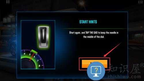 1、在绿灯亮起时,点击红框箭头指向的油门按钮。