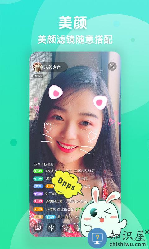直播间升级全屏,视频效果高清优化,主播的美尽收眼底;聊天 、弹幕、礼物 各色消息应有尽有,想怎么勾搭就怎么勾搭;攒满点赞槽,引爆直播气氛。古灵精怪,映客成辉。
