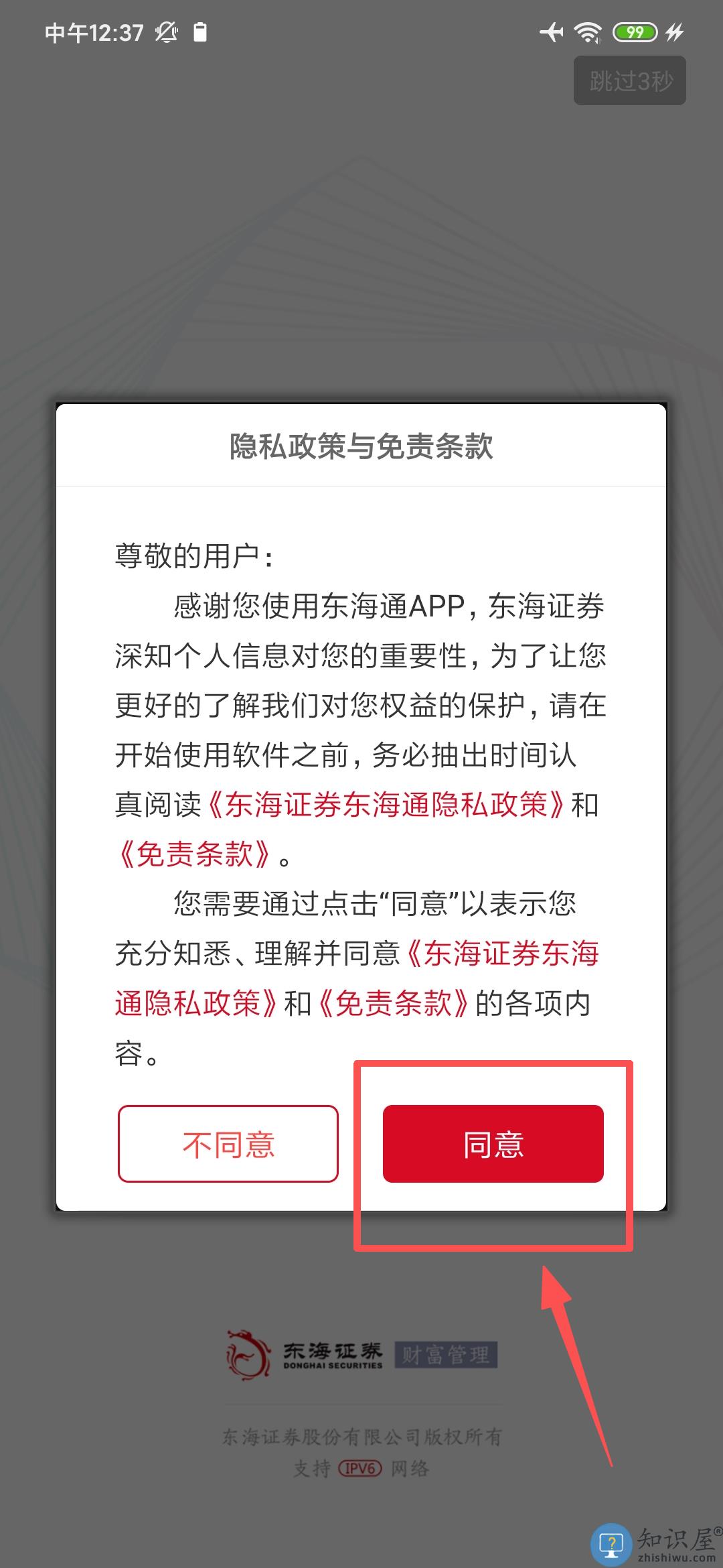 1、于隐私政策弹窗中点选同意,随后进入行情页自选股界面。