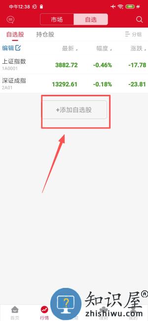 2、在该界面点击添加自选股按钮,进入股票搜索页面。
