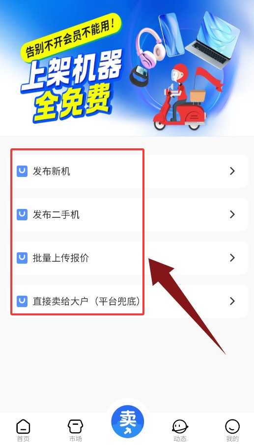 4、发布界面支持上新机、二手机,并可批量报价或直售大户。