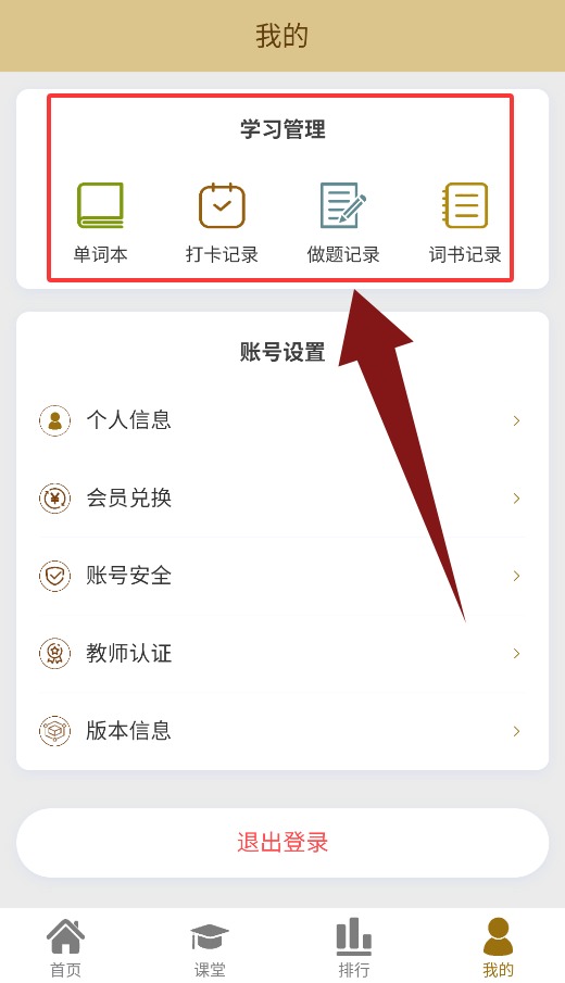 4、个人中心支持管理学习计划、打卡记录、词书与做题统计。