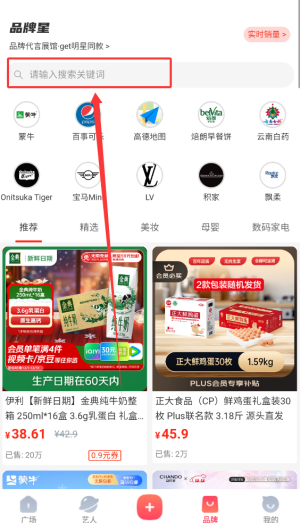 4、品牌区域设有商品搜索功能,用户可在此查找特定品牌或直接输入关键词寻找相关商品与活动。