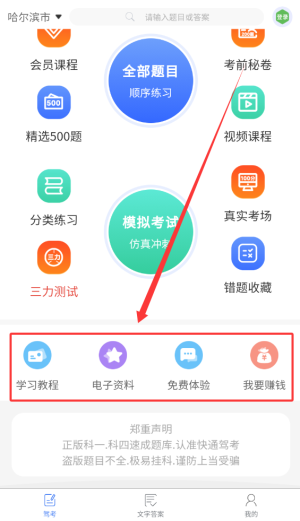 3、该板块同时整合了视频学习教程电子版教材下载免费体检预约及通过分享应用赚取收益的入口。