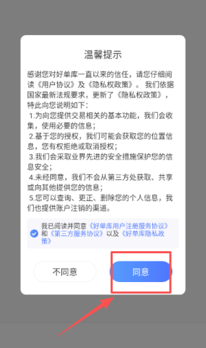 1、于提示弹窗中勾选协议并点击同意,随后进入应用首页。