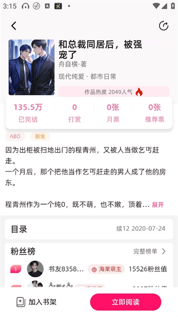 2、在书库中看到感兴趣的作品点击封面就能进入详情页先阅读简介和目录判断是否符合你的口味。
