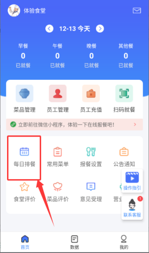 3、在首页选择每日排餐功能,查看或管理当日餐食安排。