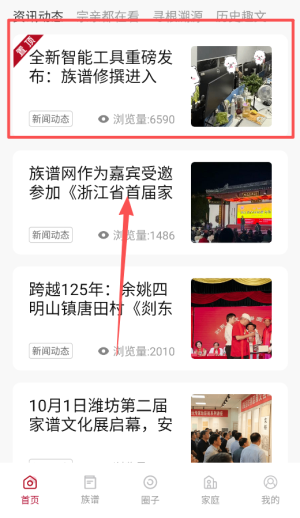 3、返回主界面,可根据需要选用查族谱、人脉、家族圈等功能服务。