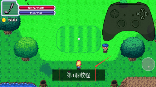 1、点击教程提示,开始第一洞教学。