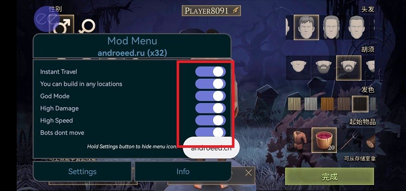 4、进入游戏界面后,开启左侧菜单如ee、ff或者绿色钥匙图标,即可破解;如果看不懂英文菜单,请参考以下小编的翻译注释。