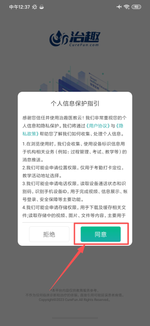 1、于个人信息保护弹窗中点选同意,确认后进入登录页面。