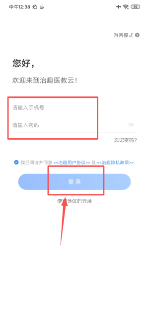 2、在登录页输入手机号密码,勾选协议后点击登录完成。