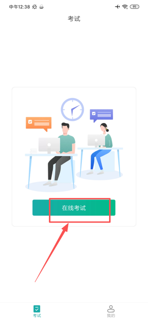 3、登录后进入考试页面,点击在线考试按钮参与考试。
