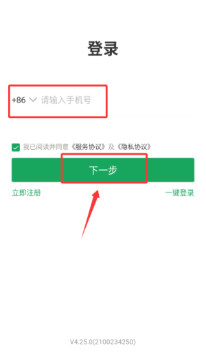 1、于登录页输入手机号,勾选协议后点击下一步完成登录。