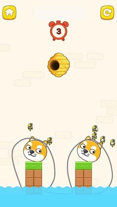 1、观察关卡布局,明确狗狗位置与蜜蜂来袭方向。