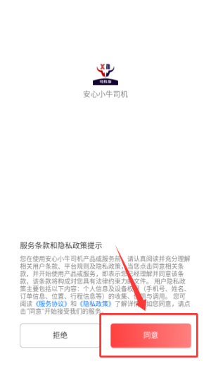 1、打开应用阅读服务条款,点击同意按钮进入下一步。