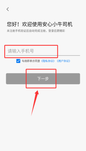 3、在新界面输入手机号勾选协议,点击下一步完成操作。