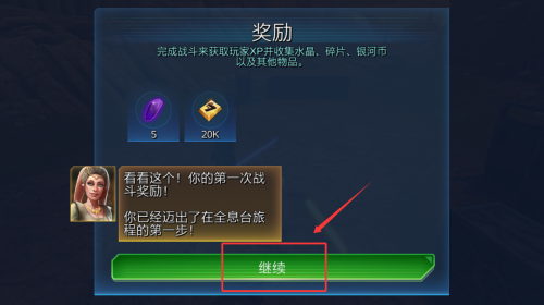 3、点击绿色继续按钮,领取战斗胜利奖励。