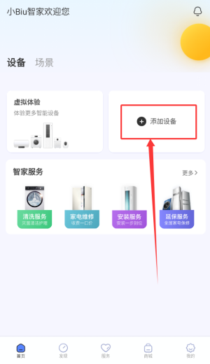 3、在首页选择添加设备功能,便能连接并管理新的智能电器。