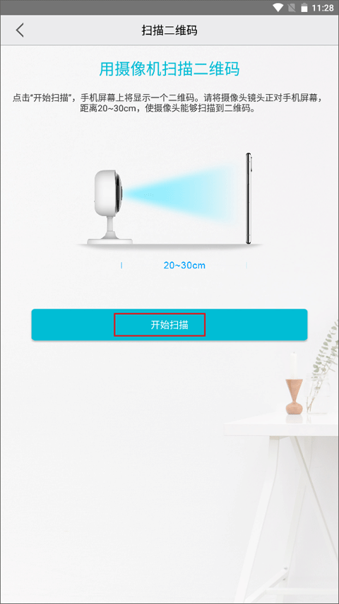5、输入家中WiFi的密码并进入下一步,点击下方的“开始扫描”,这时手机屏幕上就会显示一个二维码,将摄像头对准,扫描成功后就可以添加成功了。